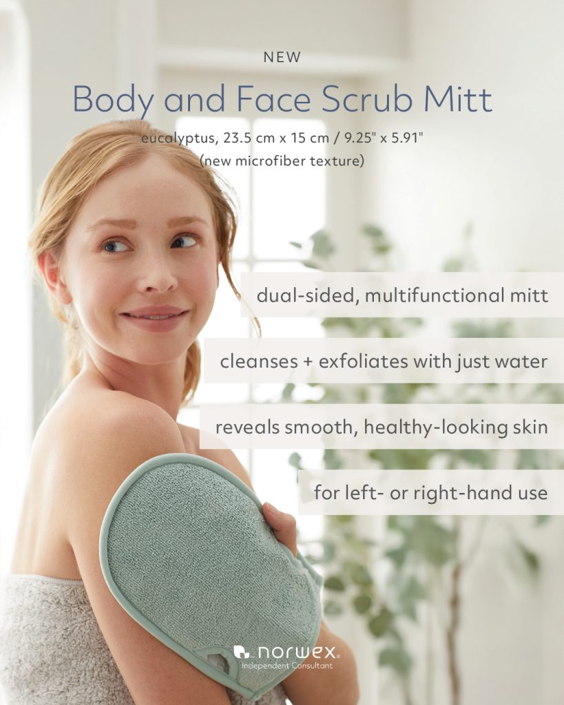 Norwex’s Back Scrubber now comes in the new eucalyptus color, but still gives a good scrub from head to toe! With this design, you can get all the hard to reach places!
