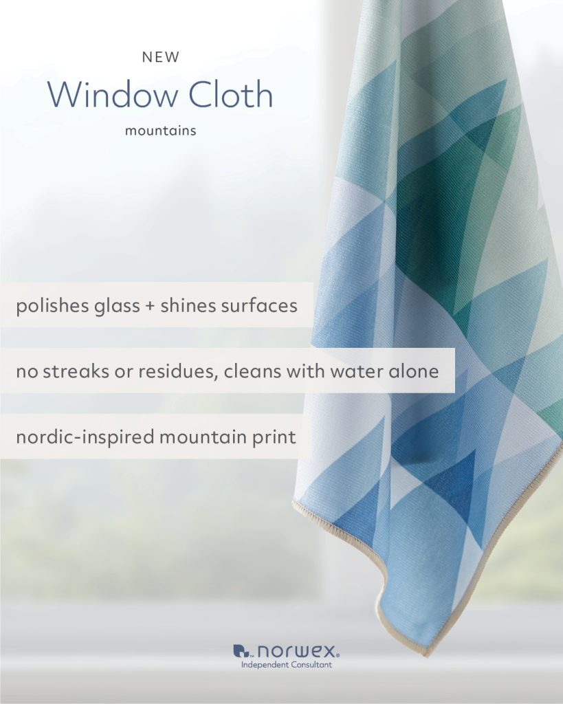 Norwex’s Window Cloth is one of the most popular products, replacing your need for window spray and paper towels with just one purchase. This cloth now comes in a modern mountain pattern!